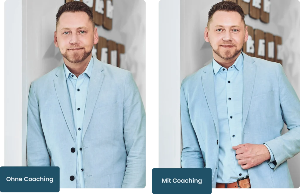 Viele Menschen denken, sie müssten vor der Kamera „performen“ oder wissen, wie man sich hinstellt. Das ist Quatsch. Du bist Experte im Marketing, im Vertrieb oder in der Buchhaltung – nicht auf dem Laufsteg in Paris. Es ist zu 100 % meine Aufgabe als Fotograf, dich so zu lenken, dass du gut aussiehst.